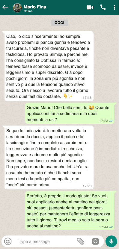 Già dal primo utilizzo molti utenti riferiscono una sensazione di pancia più sgonfia, pelle più compatta e un comfort immediato grazie al patch che crea un vero e proprio effetto “fascia attiva” professionale, favorendo un assorbimento profondo e mirato degli attivi.